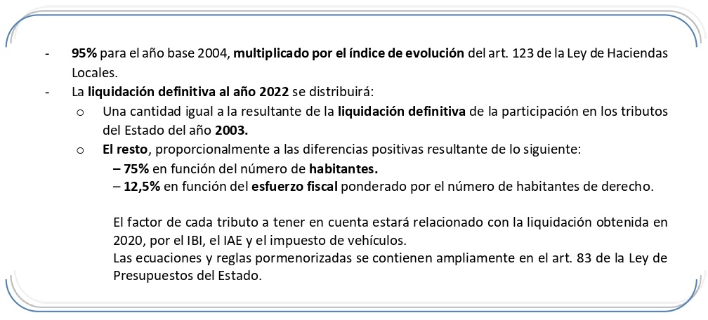 Participación de los municipios en los tributos del Estado para el año 2022: