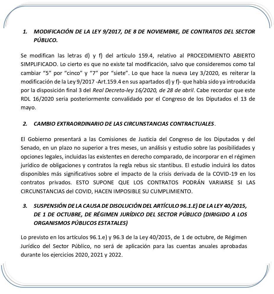 El BOE del sábado pasado, 19 DE SEPTIEMBRE DE 2020 publica la LEY 3/2020, DE 18 DE SEPTIEMBRE, DE MEDIDAS PROCESALES Y ORGANIZATIVAS PARA HACER FRENTE AL COVID-19 EN EL ÁMBITO DE LA ADMINISTRACIÓN DE JUSTICIA.