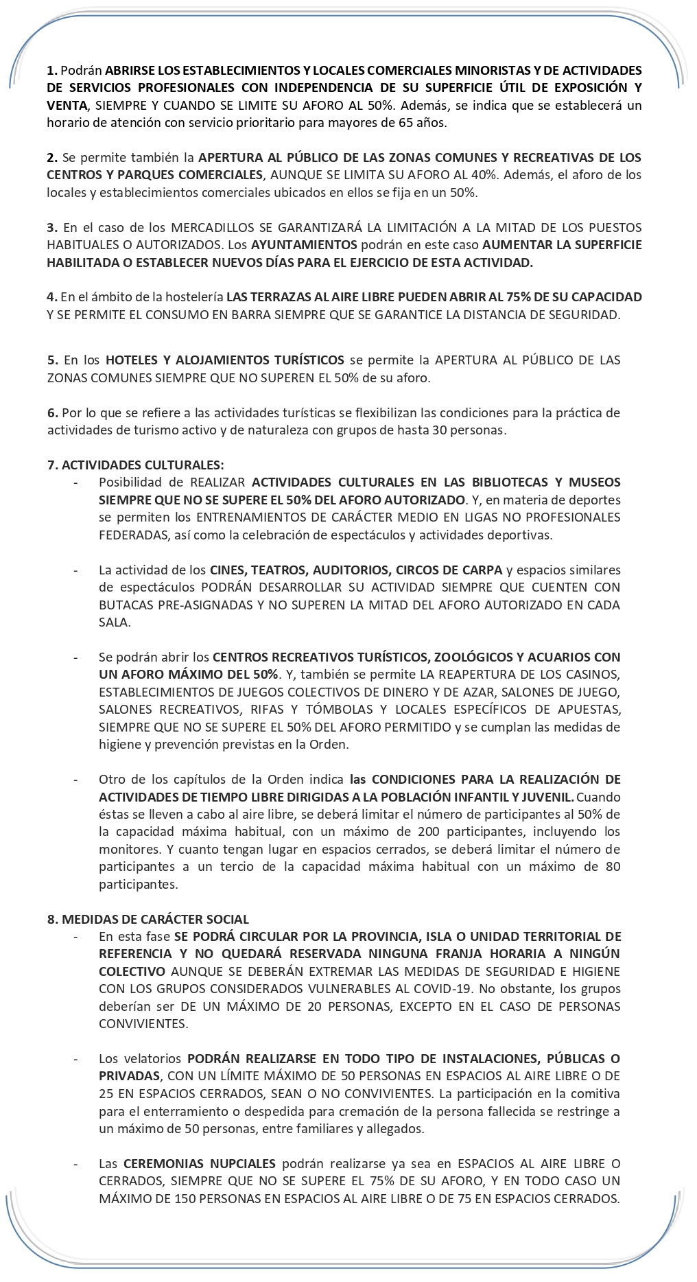 4. ORDEN SND/458/2020, DE 30 DE MAYO, PARA LA FLEXIBILIZACIÓN DE DETERMINADAS RESTRICCIONES DE ÁMBITO NACIONAL ESTABLECIDAS TRAS LA DECLARACIÓN DEL ESTADO DE ALARMA